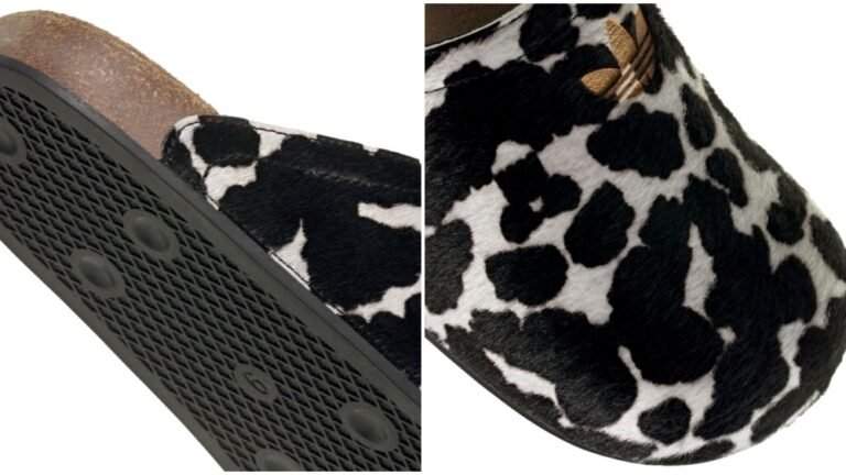 Adidas descrive l’Adimule come una scarpa casual per minimalisti, anche se questo imminente look con stampa di mucca potrebbe allontanarsi dal gruppo demografico previsto. Abbina una tomaia in pelle alla già citata intersuola in sughero e una suola in gomma e finora è stata offerta solo nelle taglie da donna. Una precedente versione della scarpa, l’Adimule Lea, è stata lanciata nel 2024 e offerta in taglie da uomo, ma da allora è stata interrotta.
