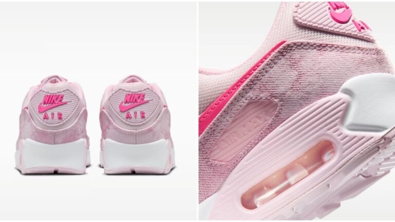 L’Air Max 90 Denim appena rilasciata è disponibile in Pink Foam/Pearl Pink/White/Pinksicle e utilizza un effetto candeggina sui pannelli in denim slavato, conferendo alla scarpa un aspetto vissuto fin dal primo utilizzo. A parte l’intersuola in schiuma bianca, è tutto rosa per questo paio, che utilizza molteplici tonalità sulla tomaia, inclusa una brillante tonalità Pinksicle sullo Swoosh, sulla linguetta e Nike Marchio sul tallone dell’aria. Secondo Nike, la nuova coppia utilizza accenti strutturati per un look ispirato agli anni ’90 in colori facili da abbinare.